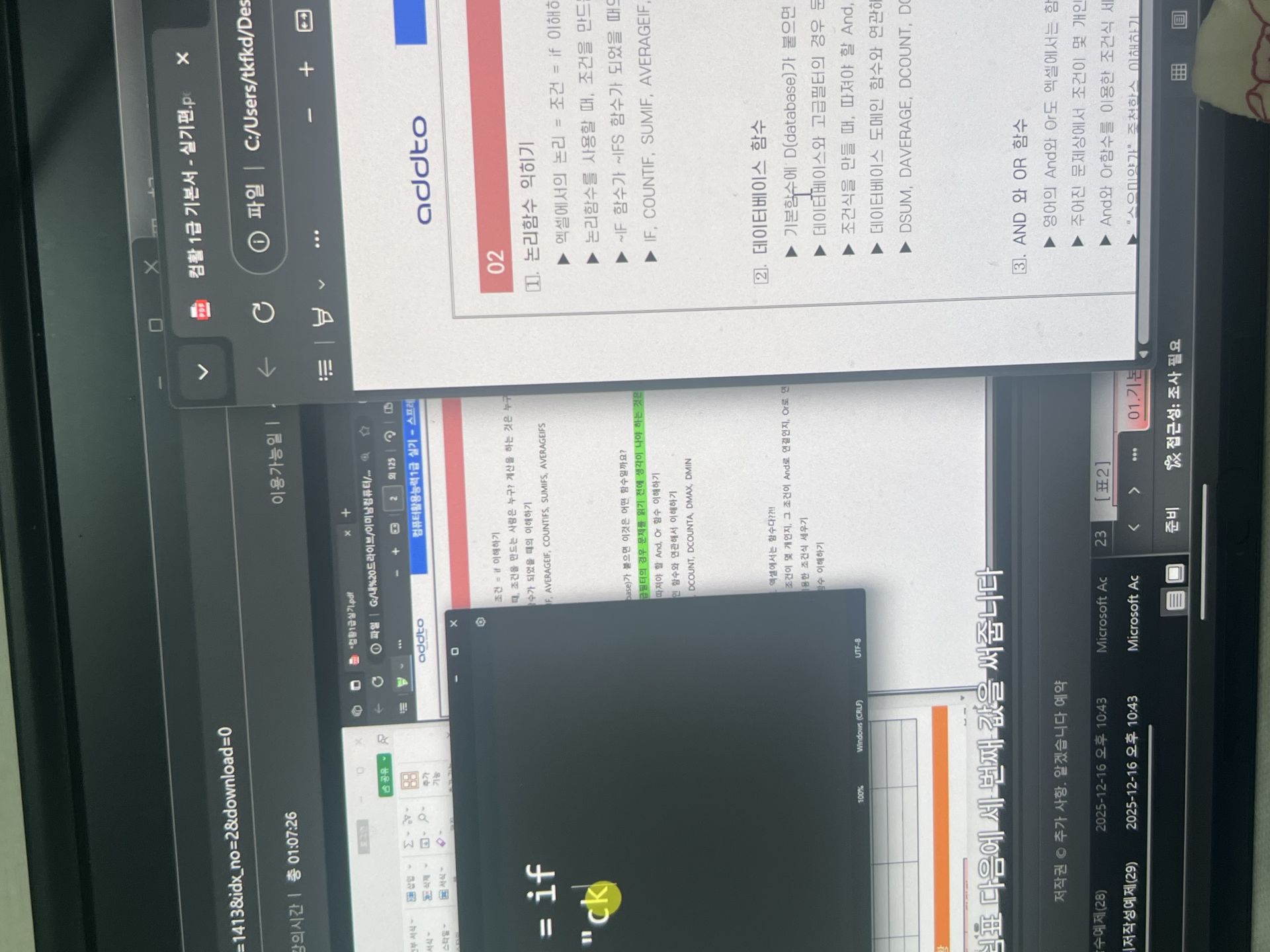 - BEST nave**** / 2025-04-01 #필기+실기 *이미남 컴활 1급 필기+실기 수강 후기* 컴활 1급 실기 엑셀 함수 열공 후기!!! 컴활 1급 실기 엑셀 함수 열공중, 오늘은 2일차라 학습 커리큘럼대로 3강-5강 듣기가 목표임. 1강을 통해 column, row, number, ref - rank.EQ 함수 , range - countif 함수, array 등 함수의 영어단어들 외우기를 마쳤다. 오늘은 참조함수, 날짜 시간함수, 문자열 함수로 시작한다. 필기 때부터 날 괴롭혔던 lookup함수... 참조함수란 표에서 내가 원하는 값을 구하지 못하지만 옆에 있는 표를 참조하면 결과를 가지고 올 수 있는 것이라 한다. ++ xlookup이 추가되었다고 한다. 표를 보고 행인지 열인지 어느 값을 쓸지를 보고 V를 쓸지 H를 쓸지 선택해서 사용하면 된다. 어디에서 절대참조가 필요한지도 연습하면서 F4키 눌러준다. True(1)/False(2) 정확한 값이 필요한지 유사값이 필요한지도 구분하여야한다. VLOOKUP(lookup_value, table_array, col_index_num, [range_lookup]) 샘 강의 듣고 오늘자로 뽀갠다!!!! 필기는 2트로 냅다 따버렸지만 독학 실기의 벽에 가로막힌 나에게 단비같은 애드투 강의가 내려왔다... 아예 컴활 다시 공부할 생각도 안하고 있어 외웠던 함수들도 까먹고 있었는데.. 차근차근 짚어주시는 애드투 이미남 선생님... 감사합니다 흑흑