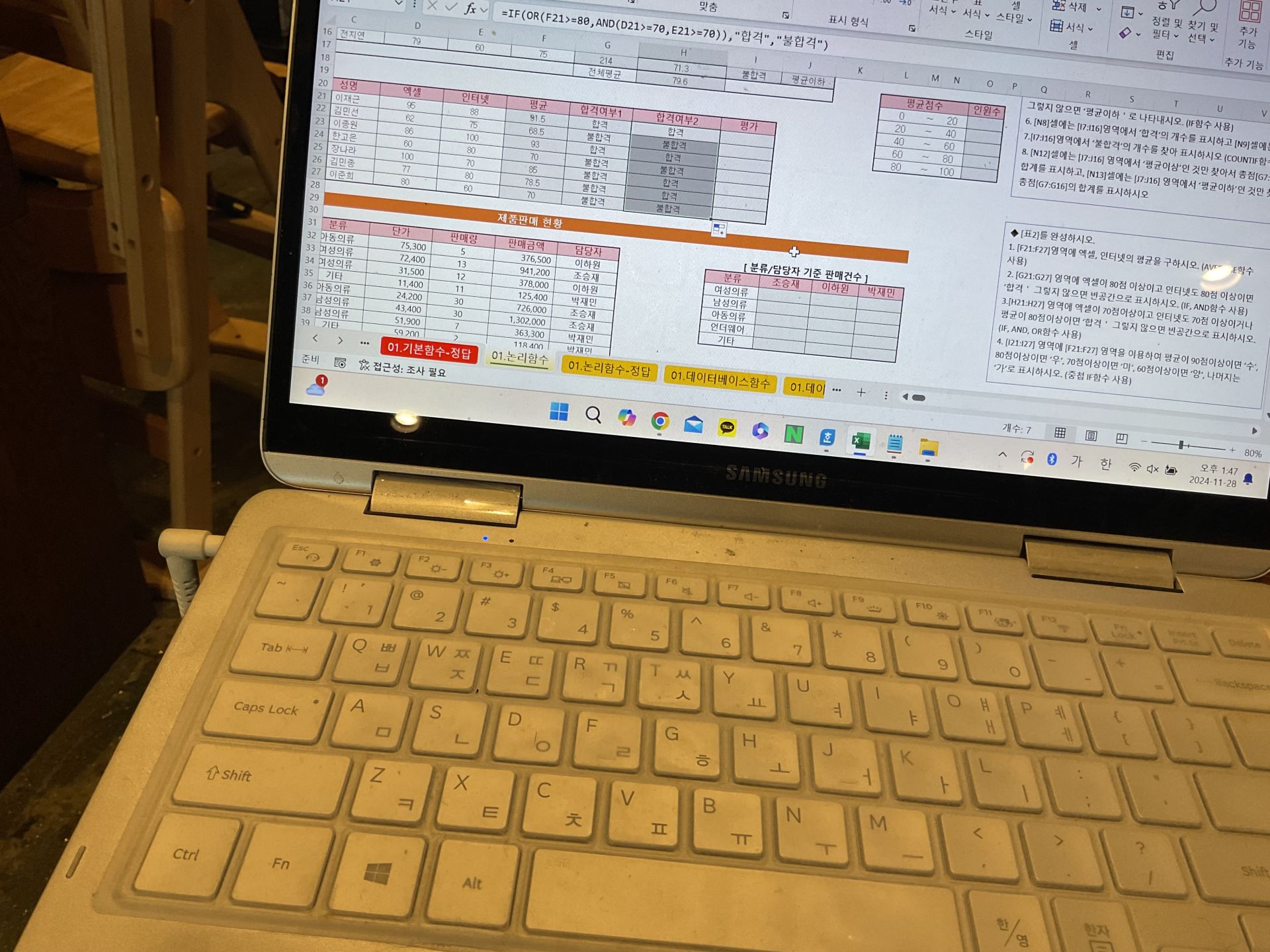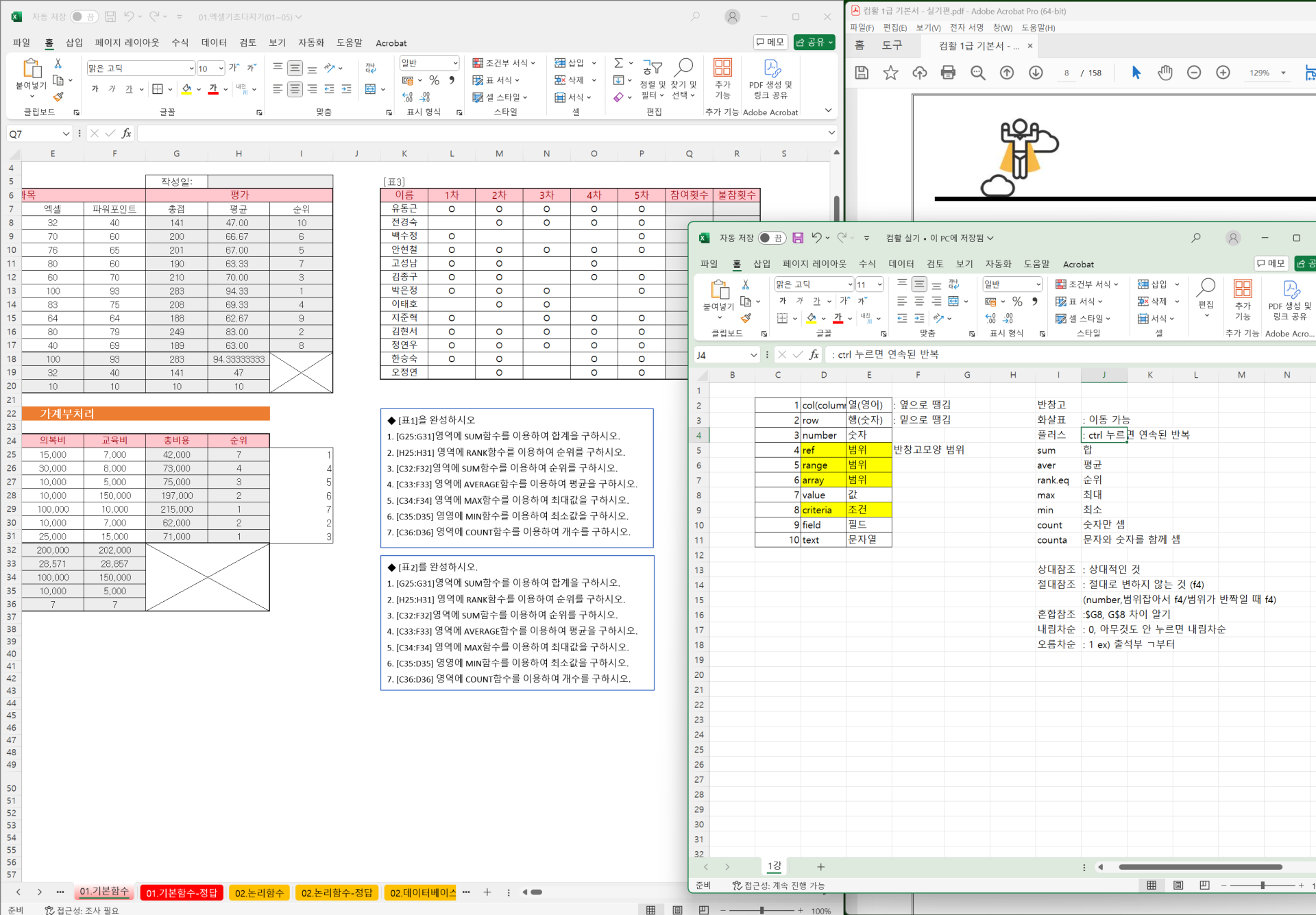 확실히 실기 문제를 먼저 풀어보고 필기를 시작하니까 엑셀 이해도가 올라갔고 워크시트 관련 문제는 쉬웠던거같아요.