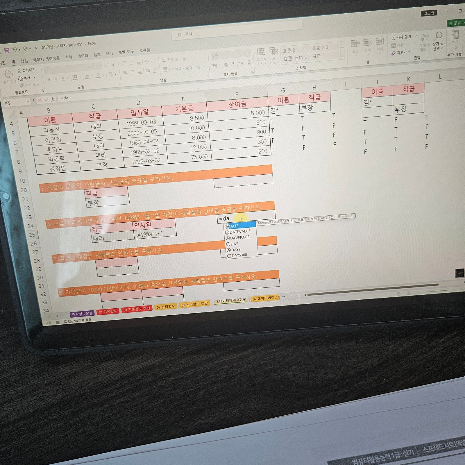 ●독할 할 때는 컴활 2급에서 나오는 함수가 왜 이렇게 쓰이는지에 대한 기본지식도 없어 맨붕이 왔는데