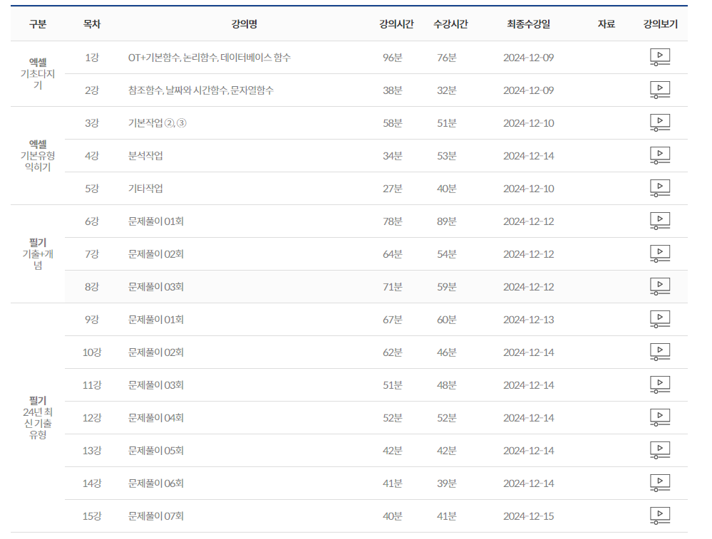 강의를 3번 이상 완강한 거 같습니다. 2025년 12월 드디어 합격!!
