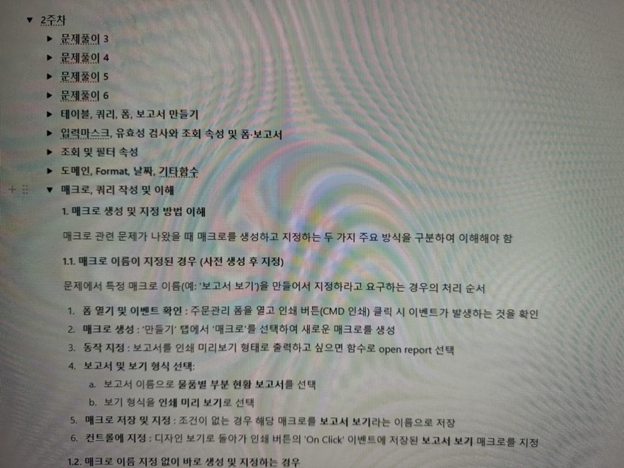 매크로, 쿼리, VBA를 연결해 설명하는 방식은 단순히 시험 대비를 넘어 데이터베이스를 활용한 자동화·필터링·테이블 생성 등 실무형 사고를 기를 수 있게 해주는 강의여서 더 좋았습니다.