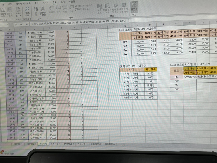 컴활 1급 실기 엑셀 인강 들으면서 3시간 정도 열공한것 같아요 ㅠㅠㅠ