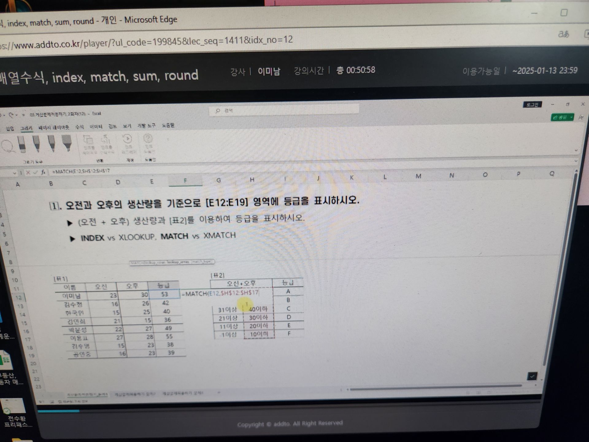 애드투 인강, 이미남 강사 + 컴퓨터활용능력시험 1급 실기 수강했습니다.