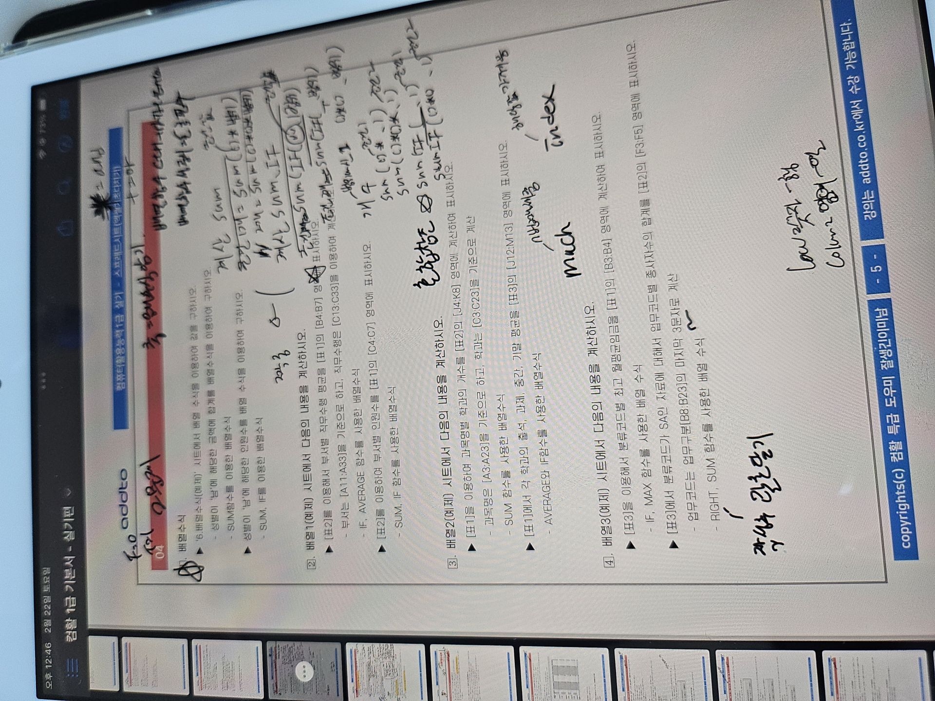 특히 액세스는 처음 들어서 처음에 따라가기 너무 힘든 거에요. 그래서 교재를 하나는 필기 있는 버전, 하나는 필기 없는 버전으로 해서 처음에 할 때는 필기 마구마구해서 밖에서도 쉽게 볼 수 있게 메모를 했구요. 하나는 필기 없는 버전으로 해서 실전처럼 연습할 때 패드 세로로 세운 후에 시험장처럼 연습했습니다!