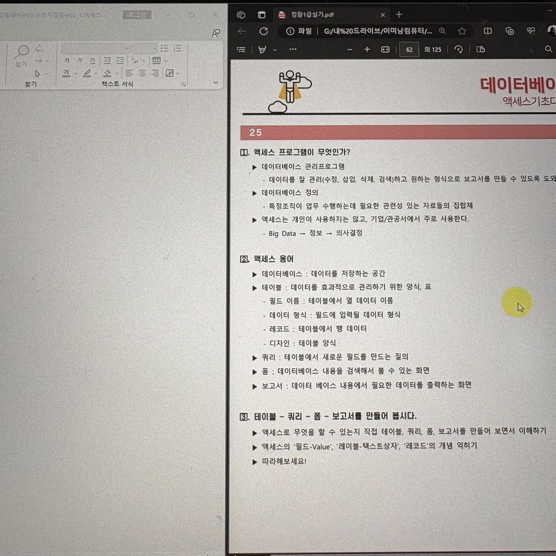 액세스는 처음이라 생소했는데 쉽게 설명해주셔서 잘 따라갈 수 있었어요.