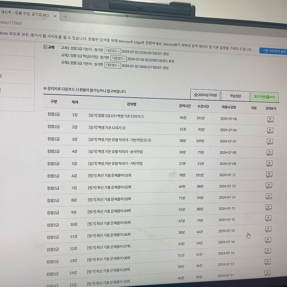 열공 인증 사진도 첨부합니다! (인강 및 교재 사진)