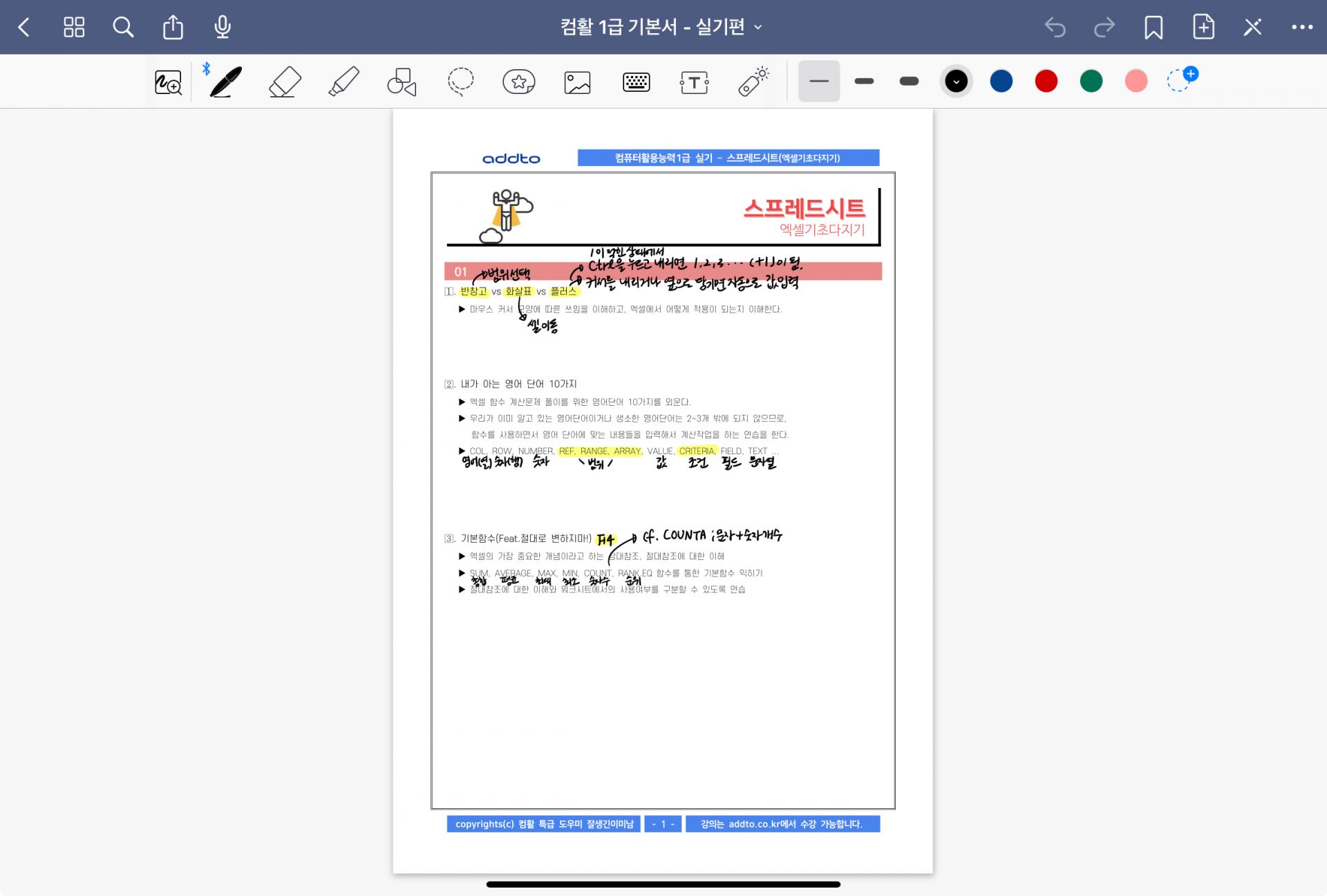 컴활 1급 인강 강의를 들으면서 애드투 이미남 선생님의 강의 특징은