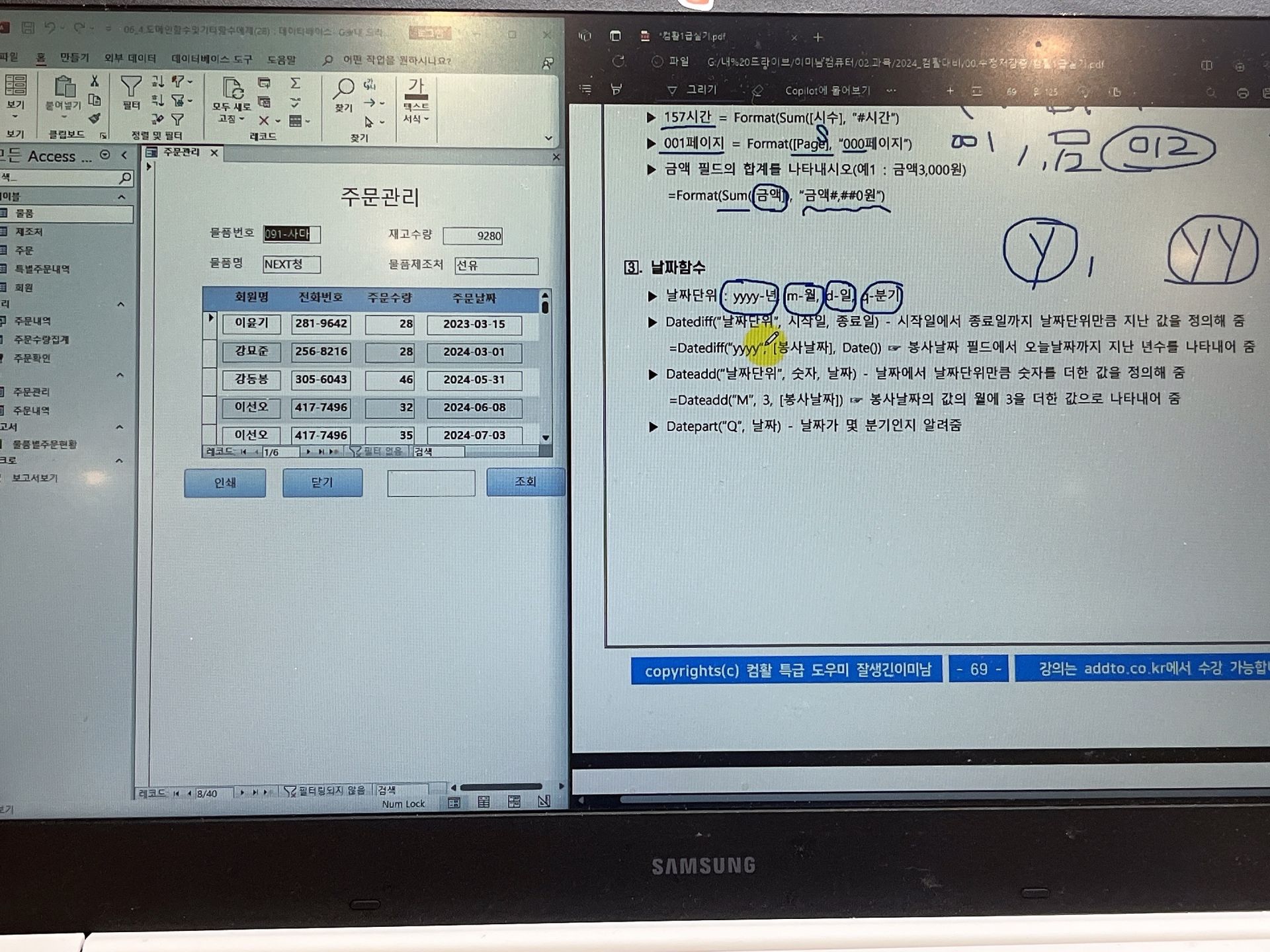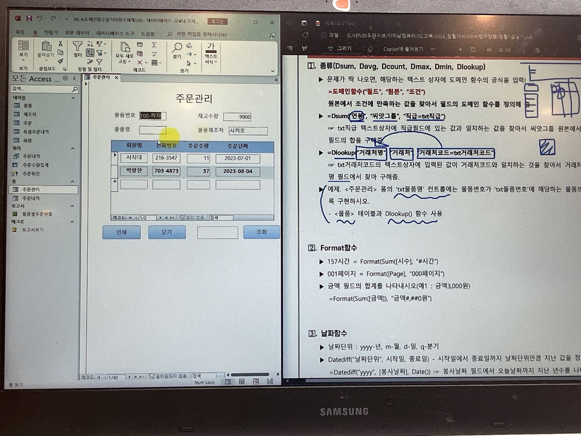 오늘은 액세스 도메인함수, format함수, 날짜함수를 했다.