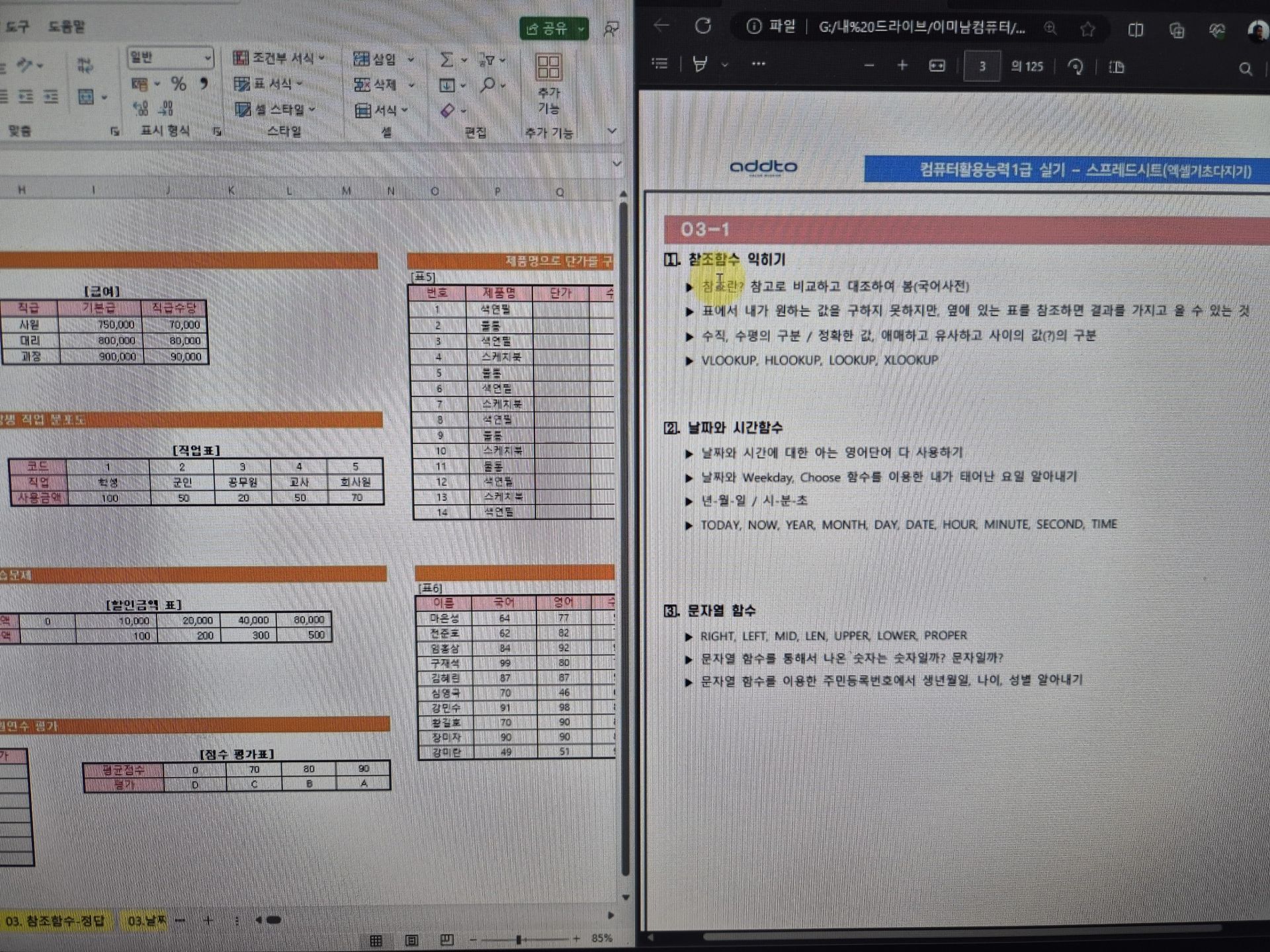 ●독할 할 때는 컴활 2급에서 나오는 함수가 왜 이렇게 쓰이는지에 대한 기본지식도 없어 맨붕이 왔는데