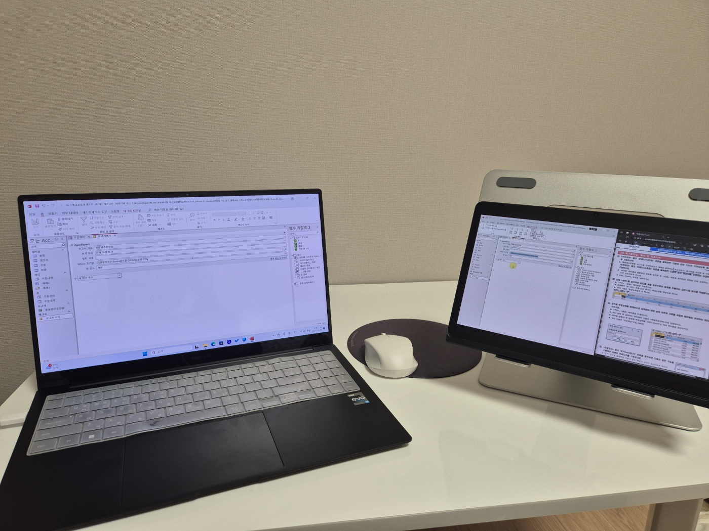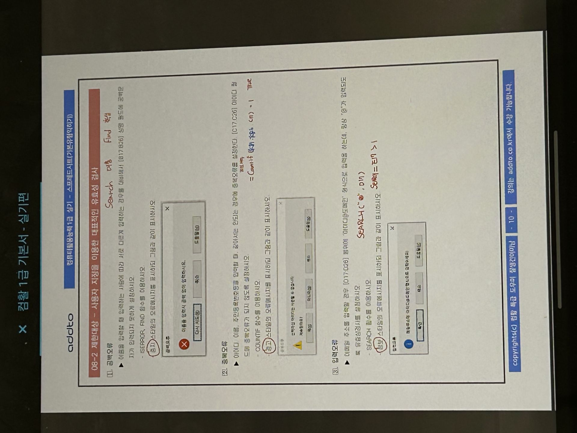 특히 액세스는 처음 들어서 처음에 따라가기 너무 힘든 거에요. 그래서 교재를 하나는 필기 있는 버전, 하나는 필기 없는 버전으로 해서 처음에 할 때는 필기 마구마구해서 밖에서도 쉽게 볼 수 있게 메모를 했구요. 하나는 필기 없는 버전으로 해서 실전처럼 연습할 때 패드 세로로 세운 후에 시험장처럼 연습했습니다!