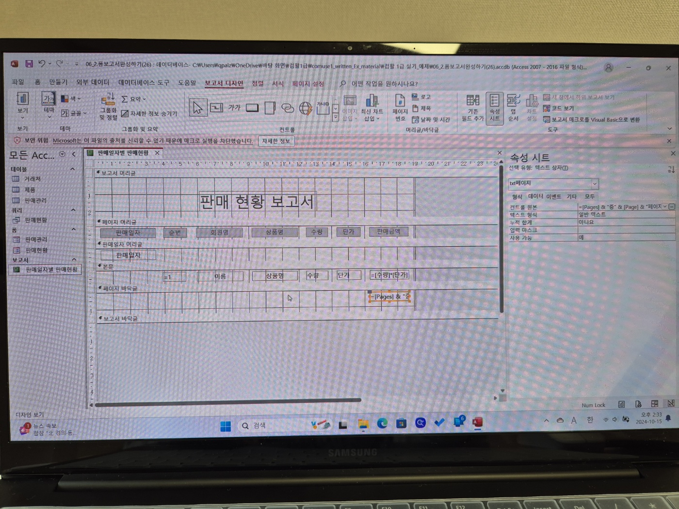 액세스 프로그램을 보면서 이미남선생님 강의와 같이 하나하나 연습하면서 배우니 기본개념과 속성들을 어떻게 바꾸는지 조금씩 이해가 가기 시작했다. 아직은 액세스가 익숙하지 않아서 어렵고 진도가 빨리 진행되지 않지만 강의를 들으면서 익숙해져서 액세스를 잘 이용할 수 있도록 복습을 계속하여서 1급 자격증을 취득할 수 있도록 하자!!!