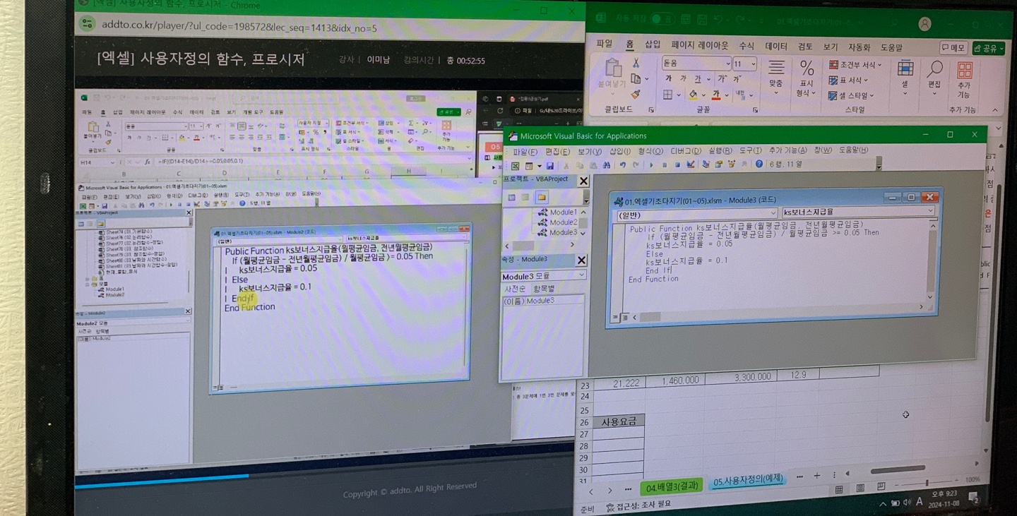 오늘도 애드투에서 컴활 1급 이미남선생님의 실기 엑셀 엑셀 기출 문제 적응 14강 열공했어요! 기출문제 풀고 있으니 뭔가 시험을 신청해야 할것같은 느낌이에요!ㅎㅎ 기출문제는 확실히 점점 난이도가 늘어가고 있지만 이미남선생님의 강의를 따라하다 보면 어렵지 않아용! 얼른 시험 신청해서 필기합격후 실기합격까지! 아쟈!