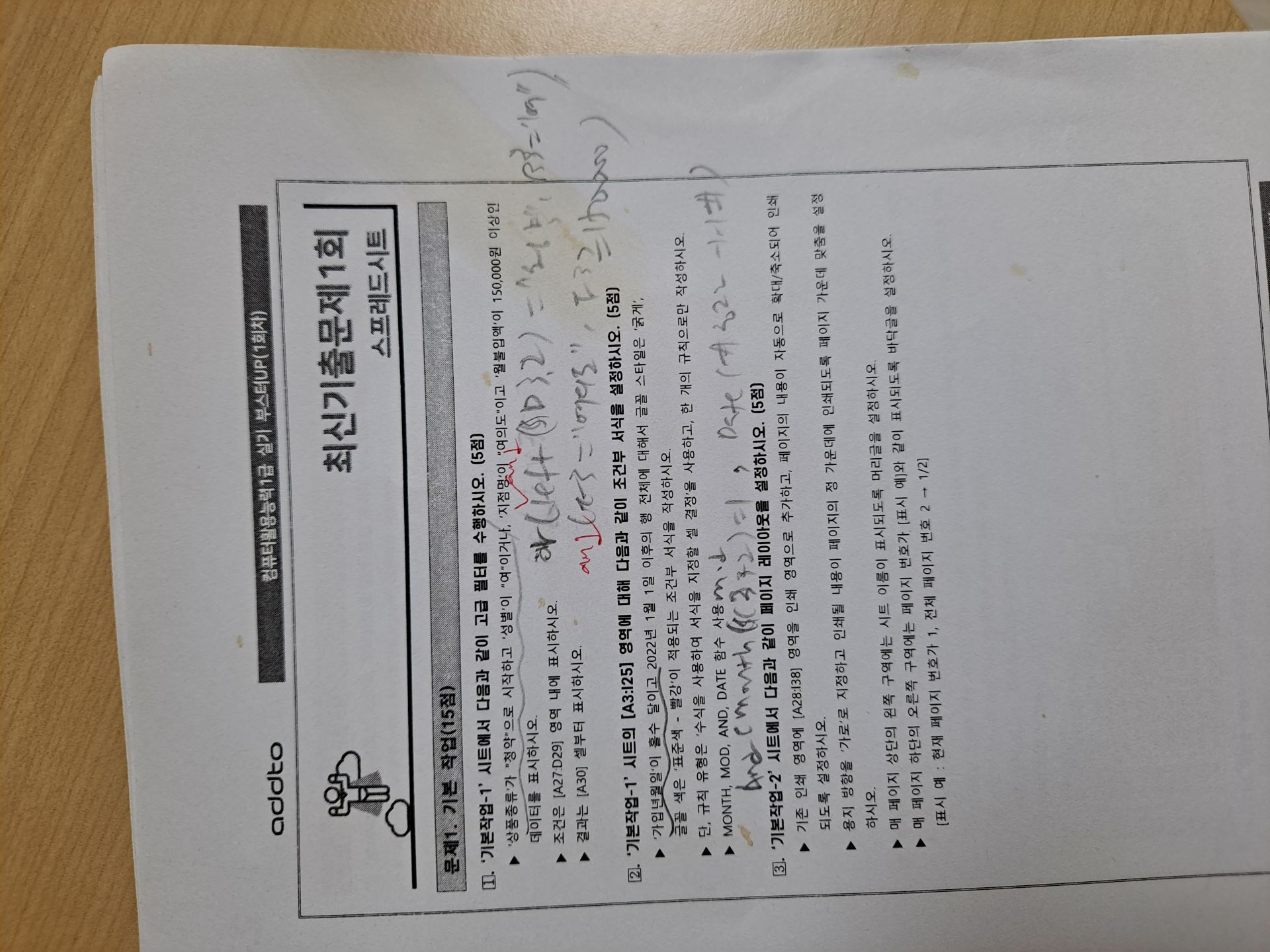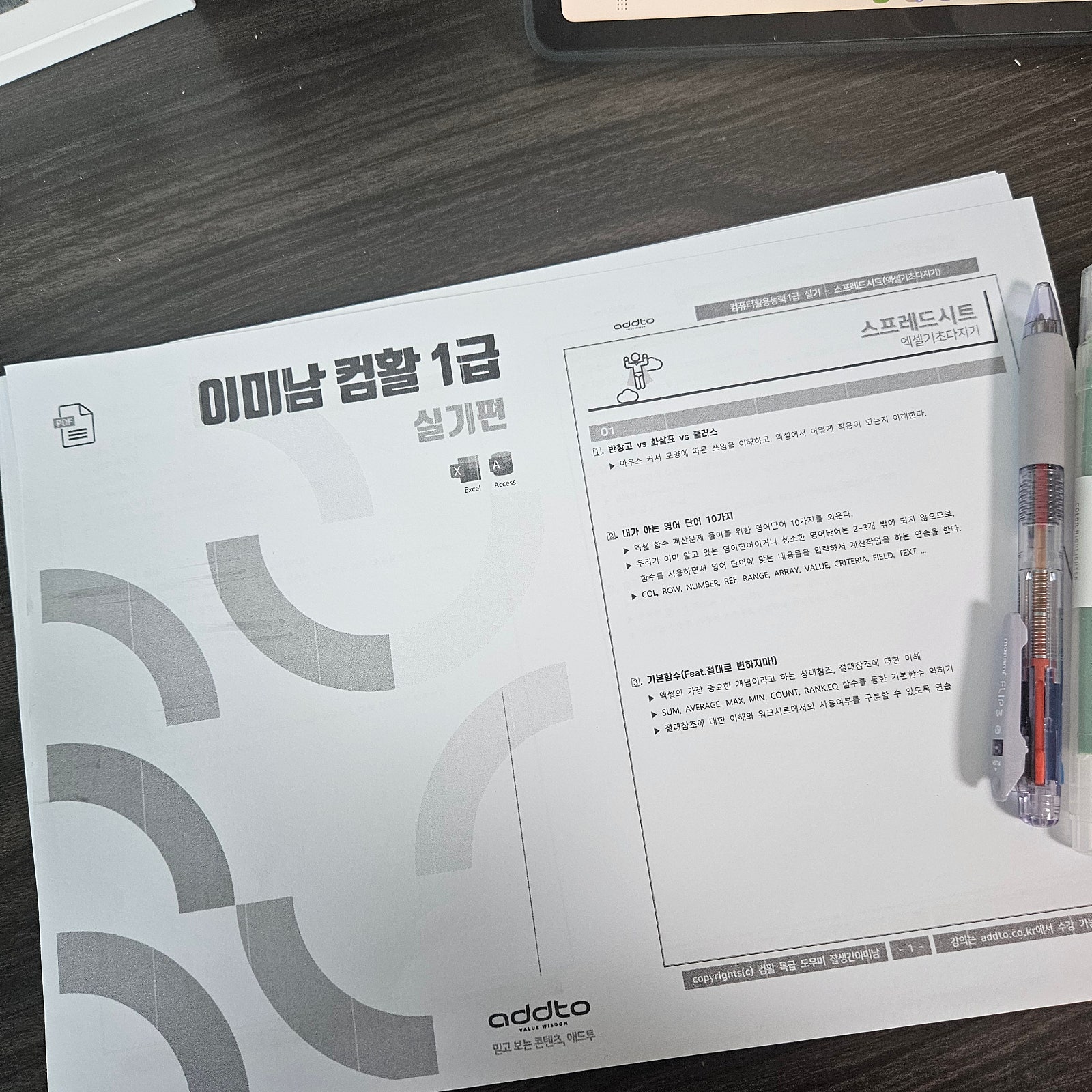 확실히 실기 문제를 먼저 풀어보고 필기를 시작하니까 엑셀 이해도가 올라갔고 워크시트 관련 문제는 쉬웠던거같아요.