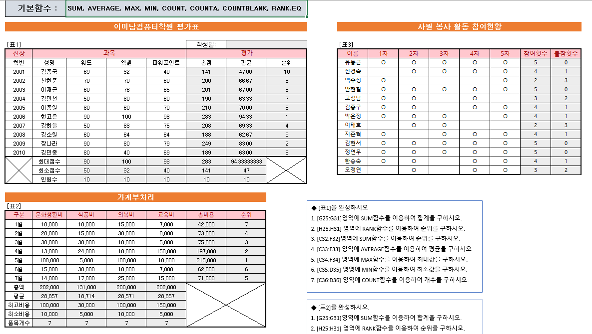 엑셀 문제 파일을 많이 올려주셔서 다양하게 많이 학습할 수 있는 게 좋습니다.
