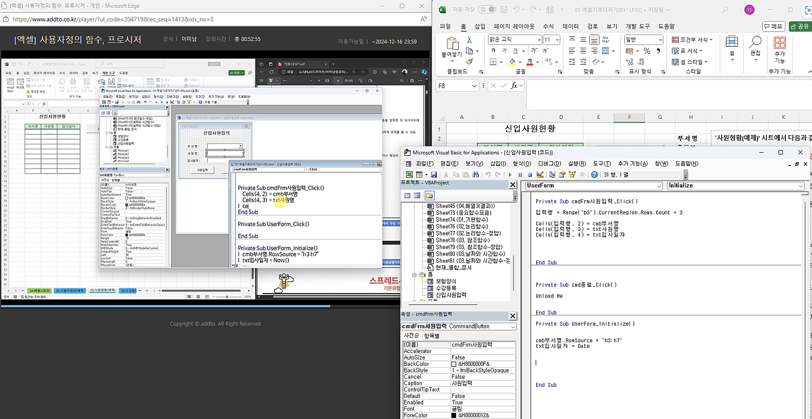 이러한 내용들을 타 인강들과 비교했고 결국 한정된 자원 안에 선택한 건 "애드투 이미남 컴퓨터활용능력 1급 인강"입니다! 주변에 같이 컴활 준비하는 친구들한테도 홍보하고 있고, 타 인강 듣는 친구들의 불편을 토로하는 걸 듣고 있으면 저는 정말 잘한 선택을 했더라고요! 강추강추합니다! -