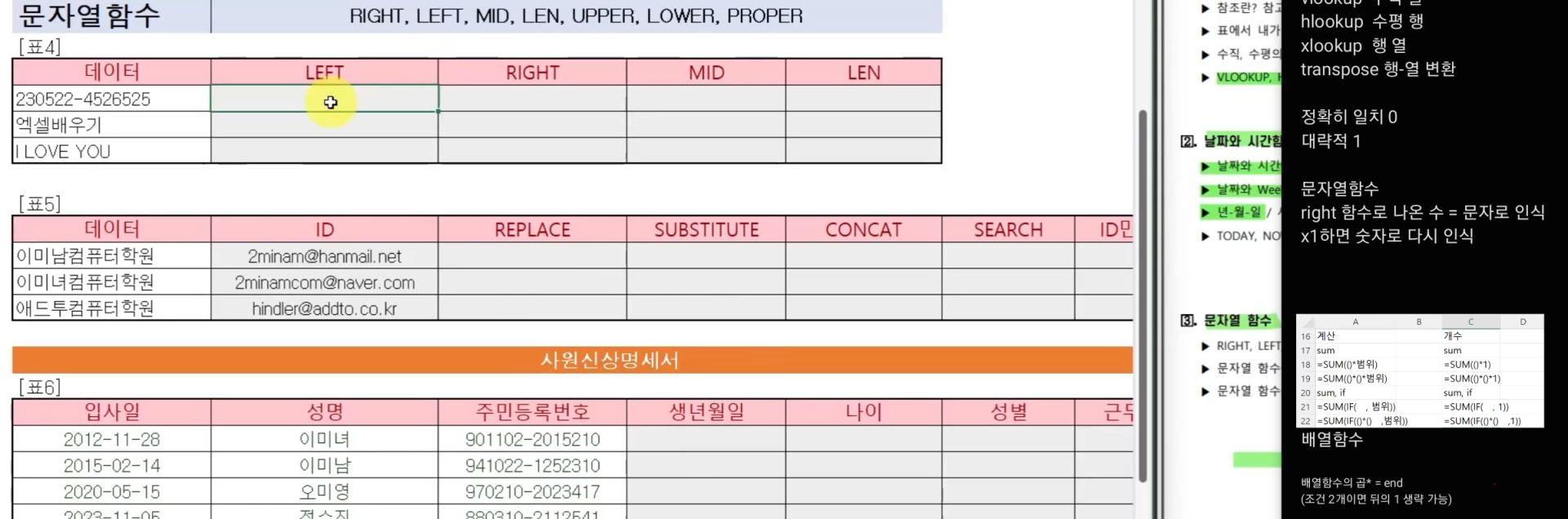 ●독할 할 때는 컴활 2급에서 나오는 함수가 왜 이렇게 쓰이는지에 대한 기본지식도 없어 맨붕이 왔는데