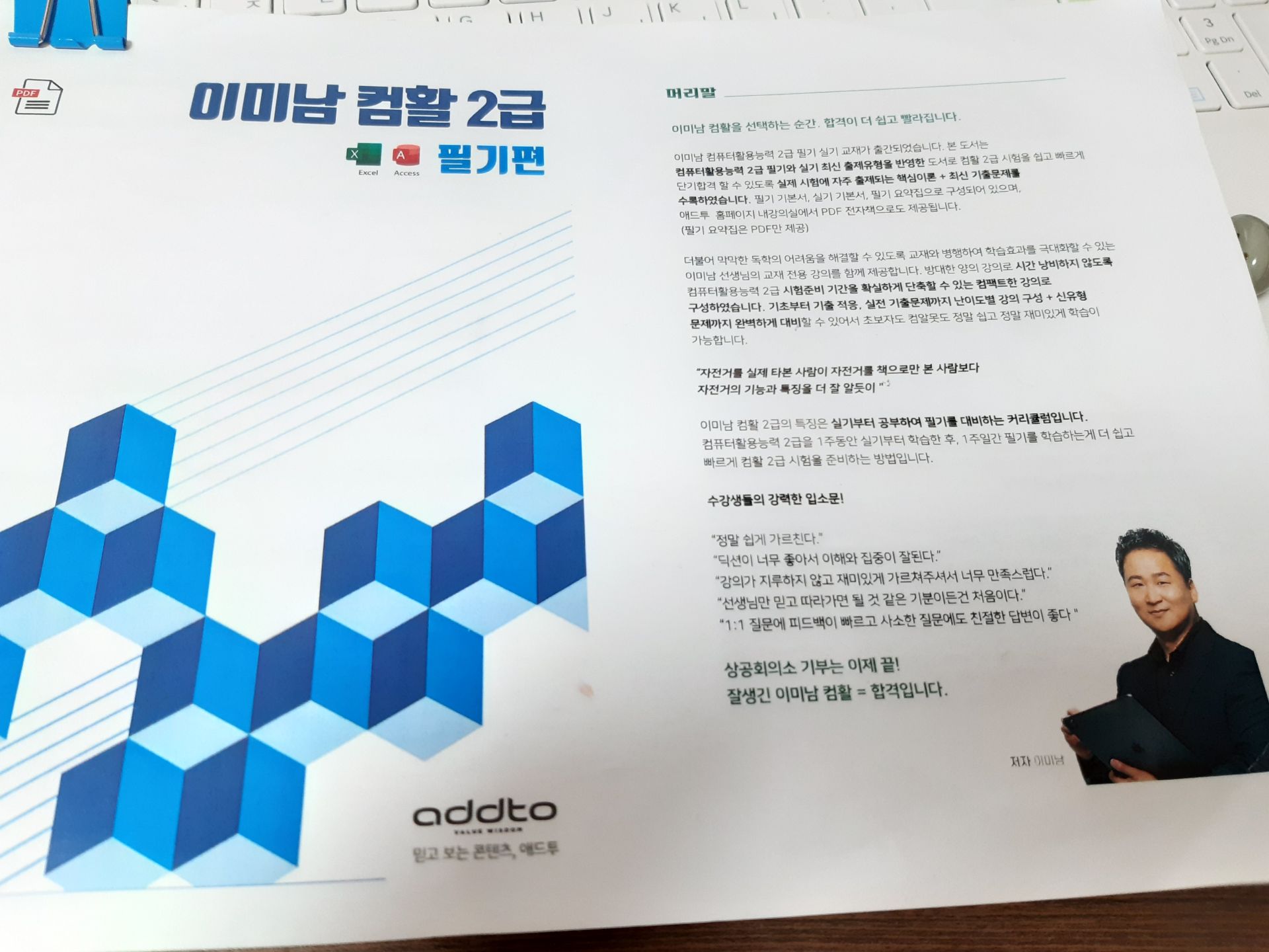 우선 취준생이라 적은 비용으로 가장 큰 효과를 뽑아내야 했기에 심사숙고 끝에 애드투 이미남 컴퓨터활용능력 1급을 선택하였습니다.