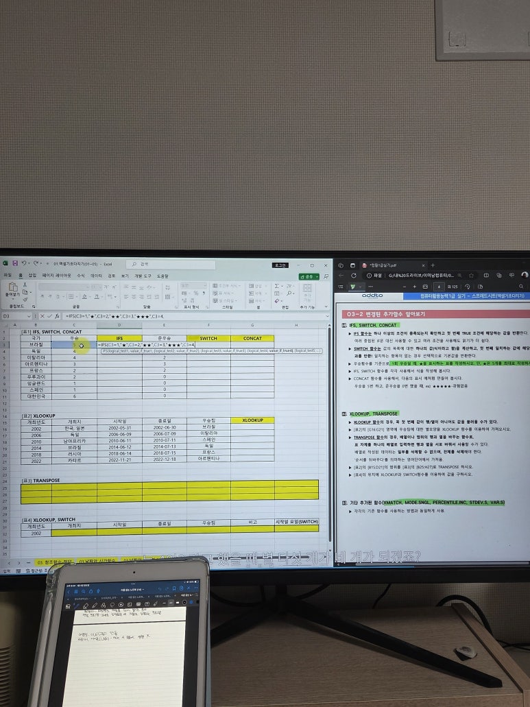 BEST nave**** / 2025-04-01 #필기+실기 *이미남 컴활 1급 필기+실기 수강 후기* 컴활 1급 실기 엑셀 함수 열공 후기!!! 컴활 1급 실기 엑셀 함수 열공중, 오늘은 2일차라 학습 커리큘럼대로 3강-5강 듣기가 목표임. 1강을 통해 column, row, number, ref - rank.EQ 함수 , range - countif 함수, array 등 함수의 영어단어들 외우기를 마쳤다. 오늘은 참조함수, 날짜 시간함수, 문자열 함수로 시작한다. 필기 때부터 날 괴롭혔던 lookup함수... 참조함수란 표에서 내가 원하는 값을 구하지 못하지만 옆에 있는 표를 참조하면 결과를 가지고 올 수 있는 것이라 한다. ++ xlookup이 추가되었다고 한다. 표를 보고 행인지 열인지 어느 값을 쓸지를 보고 V를 쓸지 H를 쓸지 선택해서 사용하면 된다. 어디에서 절대참조가 필요한지도 연습하면서 F4키 눌러준다. True(1)/False(2) 정확한 값이 필요한지 유사값이 필요한지도 구분하여야한다. VLOOKUP(lookup_value, table_array, col_index_num, [range_lookup]) 샘 강의 듣고 오늘자로 뽀갠다!!!! 필기는 2트로 냅다 따버렸지만 독학 실기의 벽에 가로막힌 나에게 단비같은 애드투 강의가 내려왔다... 아예 컴활 다시 공부할 생각도 안하고 있어 외웠던 함수들도 까먹고 있었는데.. 차근차근 짚어주시는 애드투 이미남 선생님... 감사합니다 흑흑 ​