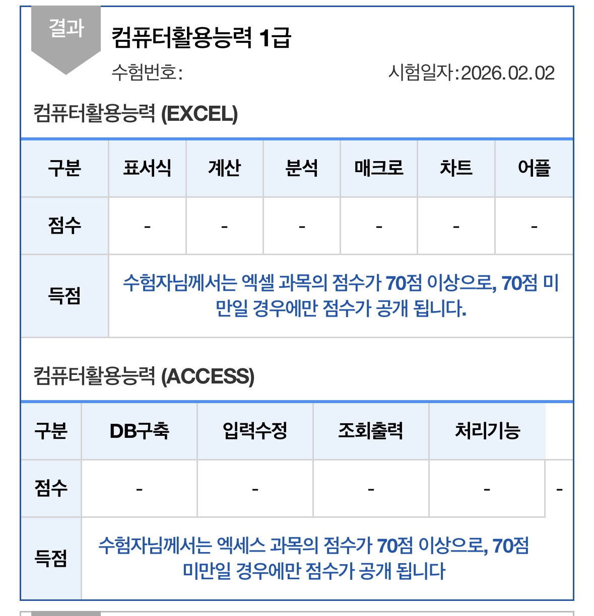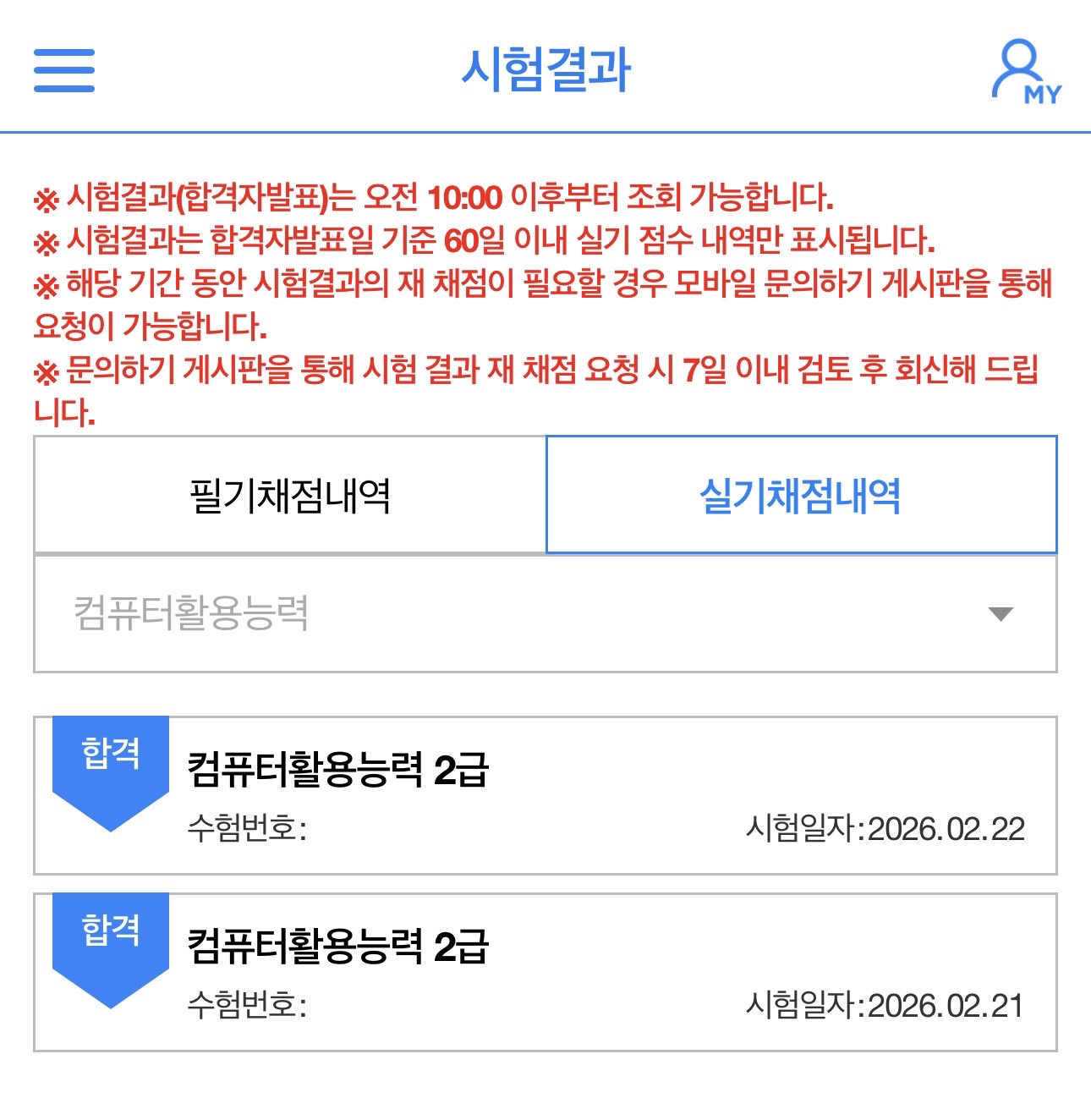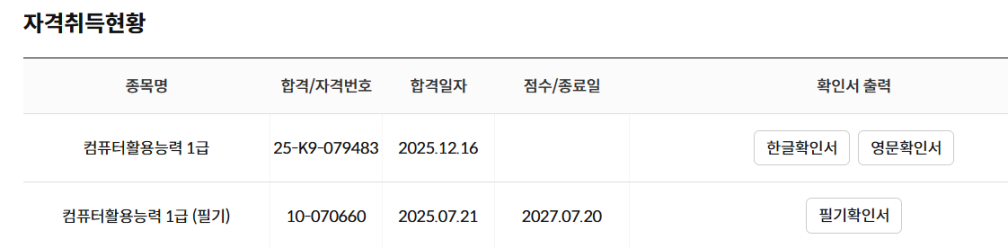 [ 내돈내산 ! 컴활 2급 ! 필기 / 실기 합격 후기 !!!! ] 환갑이 넘은 나이에 국가자격증 취득에 도전 하였네요. 너무 늦은 나이에 기억력과 타자능력이 걱정이 많이 되었지만 도전을 결심하고 혼자 공부하여 취득하기는 너무 힘들 것 같아 인터넷, SNS등 여기저기를 찾아보다가 "애드투 이미남 컴활"에 딱 꽂혀서 바로 수강 신청을 하였습니다. "내돈내산" 컴퓨터 활용 2급 자격 조기 취득을 목표로 인강을 통한 투자가 필요 할 것 같아 "내돈내산 애드투 이미남 컴활 과정"을 수강신청하여 공부을 하였네요. 그렇게 비싼 비용은 아니었어요 1급은 무리인 것 같아서 "컴퓨터활용2급 자격 필기/실기"를 준비 하였습니다. 25년 4월 15일에 수강신청하여 우선 필기을 준비 하였고 4월30일 필기시험 접수하여 "응시 횟수 1회만에 15일 공부하여" 합격 하였네요 필기 합격하고 5월20일 실기시험 접수하고 "응시횟수 1회만에 15일 공부하여" (5월초 연휴 휴무는 놀았어요. . . . ㅎㅎㅎ) 실기시험도 합격, 최종 자격 취득 하였습니다. "필기 합격 공부법"은 인강을 충실히 수강하면서 애드투에서 제공한 자료 및 모의테스트을 2회이상 반복 공부 하였습니다. "실기 합격 공부법"은 실기가 많이 부족하기때문에 특별히 더 공을 들여 공부시간을 필기 준비 시간의 3배는 투자한 것 같아요. 일단 인강 전과목을 충실히 1회 들은후, 2회차 부터는 먼저 스스로 문제을 풀어보고 인강을 다시 듣는형태로 하였고, 인강 전과정을 총 3회 반복 학습 하였네요 무엇보다도 교재의 내용이 충분히 좋았고 특히 이미남강사님의 쉬운 설명과 중요한 사항의 반복 설명은 많은 도움이 되었습니다. 늦은나이에 타자 및 실기 능력이 떨어져서 많이 걱정하였는데 필기, 실기 총 한달여만에 단 1번씩 응시하여 자격을 취득한 것은 애드투의 충실한 교재내용과 이미남강사님의 탁월한 강의 덕인 것 같습니다. 애드투 이미남컴활을 선택 한 것은 너무 잘 했던 것 같습니다. 이내용을 빌어 감사드려요~~~ 시험 합격 인증 사진 첨부 합니다.