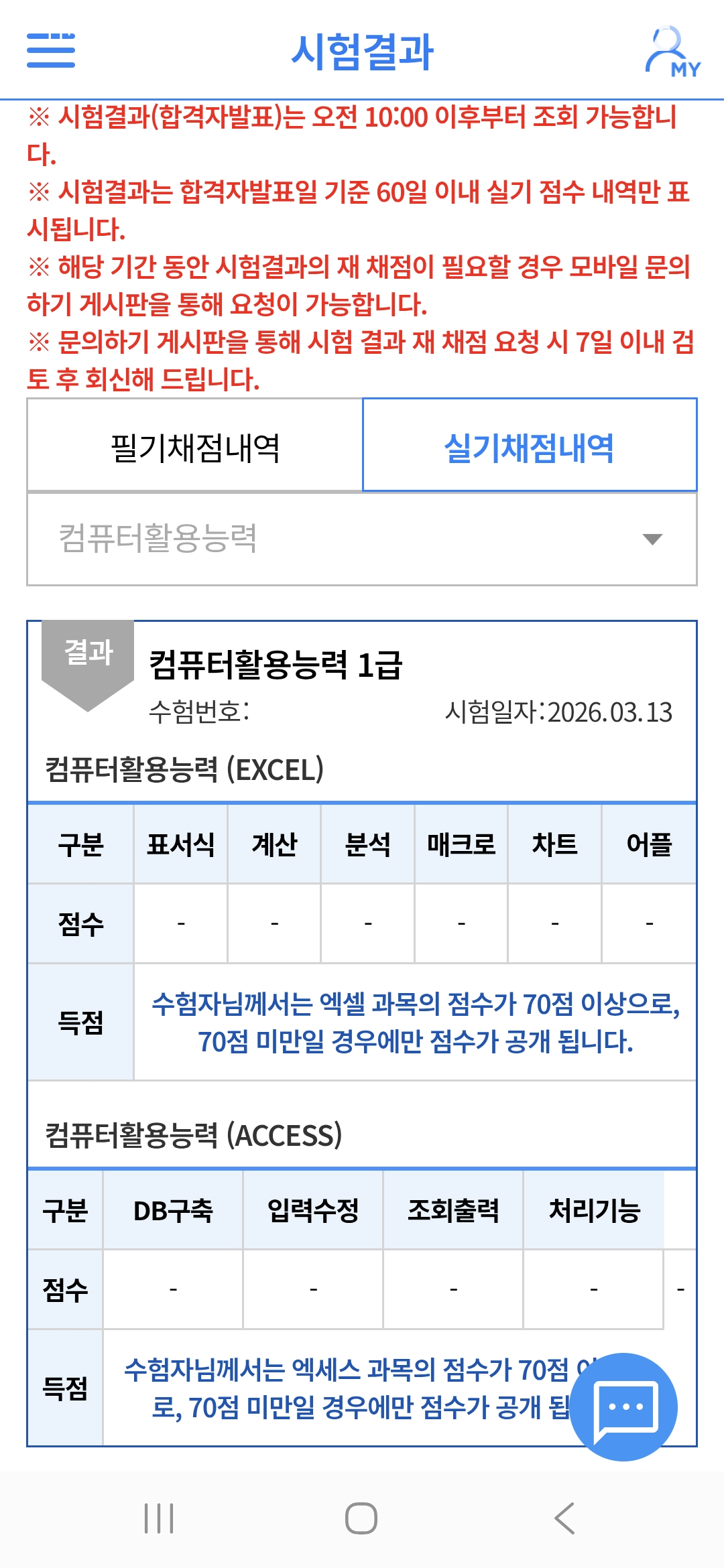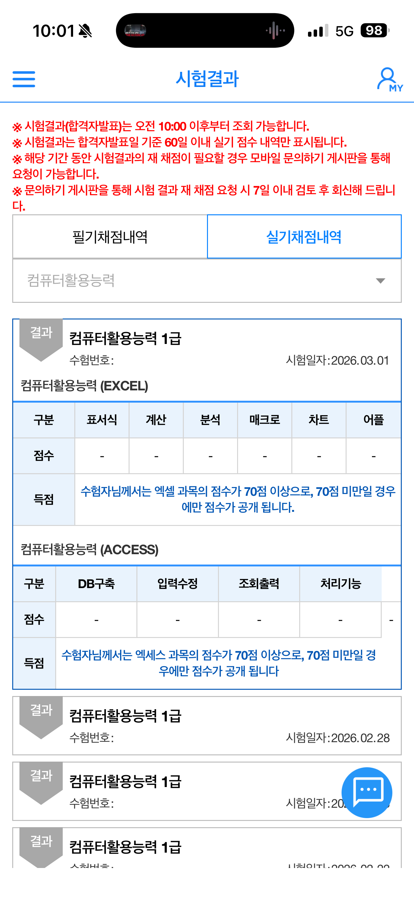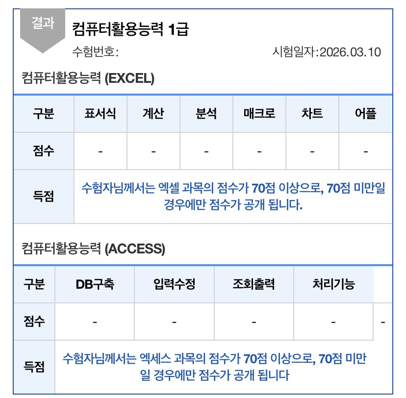 kitt**** / 2026-03-24 내돈내산 애드투 이미남 컴활 1급 필기 실기 후기 레츠고~ ​ ​ ⭐️필기는 이전 후기 참고해주세요! 컴활1급 필기 1트만에 합격!! 필기 후기 📍준비물: 시험칠 때 신분증만 있음 돼요! 🌟수험표 필요없음!! 실제로 전 폰이랑 지갑만 들고 감 가볍... m.blog.naver.com ​ ​ ​ ​ ​ ​ 드디어 unload me 할 수 있게 되었다는 소식을 들고왔어요.. 엉엉 ​ ​ 이렇게 좌절을 여러번 한 시험은 처음이네요.. ​ 금방 후기 적어야지~ 했는데 시간이 꽤 걸렸어요 ㅎㅎ.. ​ ​ 넋두리가 있어서 글이 좀 길어요 ㅋㅋ 요약정리는 맨 끝에 해둘게요 바쁘신 분들은 그것만 보셔요~ ​ ​ ​ 📍월,화 시험 신청 저는 월,화에만 시험을 쳤어요 ​ 수~화까지 친 시험을 한 번에 모아서 채점하고 마지막 화요일로부터 2주 뒤에 한꺼번에 결과를 발표하기 때문에 가장 결과를 빨리 들을 수 있는 날이 월,화 실기더라구요! ​ ​ 여러분도 참고하셔서 실기 접수 하시길! ​ ​ ​ 그럼 바로 시작할게요!! ​ ​ 1~2트(월화 시험) 실기시험은 처음인 만큼 혹시 절차상 실수를 해서 큰일날까봐 떨렸는데 안내사항 잘 들으면 문제 없었어요 ​ 2트부터는 그냥 편하게 치러 갔습니다! ​ ​ ​ 당연할 수 있지만 실기는 필기보다 더 결과를 모르겠었어요.. ​ 첫날은 엑셀은 수월했는데 액세스가 좌절스러웠어요.. 흑흑 ​ 그래서 다음날 시험 대비로 액세스 공부를 더 해가면 엑셀이 메롱~ 해서 OTL.. ​ ​ ​ 그래도 최선을 다했기 때문에 묵묵히 결과를 기다렸습니다 허허 ​ 운이 따르길 바라며..^^ ​ ​ ​ 그 결과.. ​ 불합격... ​ ​ ​ 근데 정말 운이 좋으면 합격이고 아니면 다시 해야겠다는 느낌이어서 충격이 크진 않았지만 ​ 2주간 손놓고 있던 공부를 다시 해야 한다니.. 싫었습니다.. ㅋㅋ ㅠ... ​ ​ ​ 3~4트(월화 시험) 오랜만에 엑셀을 다시 켜니까 함수도 함수지만 ​ 데이터표, 통합, 고급필터, 서식 적용, 시나리오, 피벗테이블 등 ​ 거의 모든 부분이 휘발됐더라구요 ^^! ​ ​ ​ 여러분들은 결과에 확신이 없으시다면 최소한의 감은 유지하시길.. ^^... ​ ​ ​ 감 다시 찾는 데 3일 정도 걸렸습니다 ㅋㅋ ​ ​ 그래도 한 번 공부했다고 나름 괜찮긴 했어요 ​ ​ 그리고 신기하게 전에는 어려워서 그냥 패스하자 했던 문제들이 좀 풀리는 거예요?! ​ ​ 업데이트 쿼리, fv, pmt, frequency 함수, for문에 지레 겁먹고 포기했던 지난날 ^^ ​ 헷갈렸던 hlookup이나 index 등도 이해가 잘 돼서 실수를 많이 줄이게 되더라구요! ​ 공부는 역시 반복인가 봅니다 ^^ ​ ​ ​ ​ 아무튼 sql문 작성해야 하는 쿼리는 이번에도 패스하고 ​ 나머지 업데이트 쿼리나 좀 어려운 함수들도 열심히 공부해갔습니다! ​ ​ ​ 솔직히 좀 자신만만했거든요? ​ 왜냐면 저번 시험에서 엑셀 68점, 액세스 68점으로 떨어져서... ​ 아까운 만큼 이번에 실력이 쑥 올랐으니 무난하게 합격할 거라고 생각했던 거 같아요 ​ ​ ​ ​ ​ 와... 근데... ​ 3트 시험날 엑셀은 문제4-2번 빼고는 다 맞을 거 같다는 확신이 들 정도로 잘 풀어서 드디어 끝인가 ㅎㅎㅎㅎ 했는데 ​ ​ 액세스를 풀기 시작하고 점점 굳어가는 제 표정... ​ ​ 문제 2번부터 조금씩 헷갈리는 게 나오더니 ​ 대망의 문제 4번... 쿼리 만들기에서 단 한 문제도... 풀지 못하게 됩니다... ​ ​ 저 진짜 너무 당황해서 정신 잃을 뻔했어요.. ​ 나중엔 황당해져서 시험장 나오자마자 복기하고 해설 찾아서 혹시 내일 나오면 꼭 풀어야겠다 했거든요? ​ 근데 아니 너무 최근기출이어서 아직 아무도 해설을 안 올린 것들이더라구요?! ​ ​ ​ timeserial, space ​ 얘네가 특히 진짜 생판 초면이라 너네 뭐니..? 하고 역대급 당황..;;; ​ 다른 문제들은 제가 그냥 못푼 걸 수도 있어요 어쨌든 한 번도 안 풀어본 유형이긴 했지만 사용하라는 거 자체가 초면인 애들은 없었는데 ​ 쟤네둘은 정말 ??!?? 이어서 황당했습니다 ​ (기출해설이 있는데 제가 못 찾은 걸지도) ​ ​ ​ 그래서 바로 집 가서 우울해있었어요.. ​ 아니 얼마나 문제를 더 풀라는 거야..? 과장 조금 보태서 천 문제는 푼 거 같은데 상공회의소 건물 새로 올려야 해서 갑자기 난이도를 이렇게 만들었나?! ​ 이런 의심까지 할 정도였어요 ​ ​ ​ 자신만만했는데 꺾이니까 더 좌절스럽고... ​ 신유형은 해설도 없어서 대비도 안 되고... ​ 사실 저는 액세스 쿼리 만들기 문제를 제일 좋아했거든요..? ​ 나름 퍼즐 푸는 거 같고 재밌어서.. ​ 근데 너무 뒷통수를 맞으니까 얘네 쳐다보기도 싫은데 담날 시험은 또 쳐야 하니까 공부를 안 할 수도 없고.. ㅠㅠㅠ ​ ​ ​ ​ 암튼 최근 기출 위주로 다시 달달 풀면서 정리하고 담날 다시 시험장으로 갔습니다 ​ ​ ​ 여기서 꿀팁 아닌 꿀팁 ​ 저 진짜 가는 내내, 시험장 도착해서 대기할 때, 시험 시작하기 10초 전에 다 풀고 저장하고 끝내기 10초 전에 ​ 다 싹싹 빌었어요 ㅋㅋㅋㅋㅋ ​ ​ ​ 무교라 종교적인 신들한테는 안 빌고 (혹시 괘씸해 하실까 봐.. ^^) 그냥 제발제발 무난하게만 나오게 해달라고 속으로 엄청 빌었어요 ㅋㅋㅋ ㅜㅜ ​ ​ 무난하게만 나오면 제가 노력한만큼 점수를 받을 수 있잖아요 