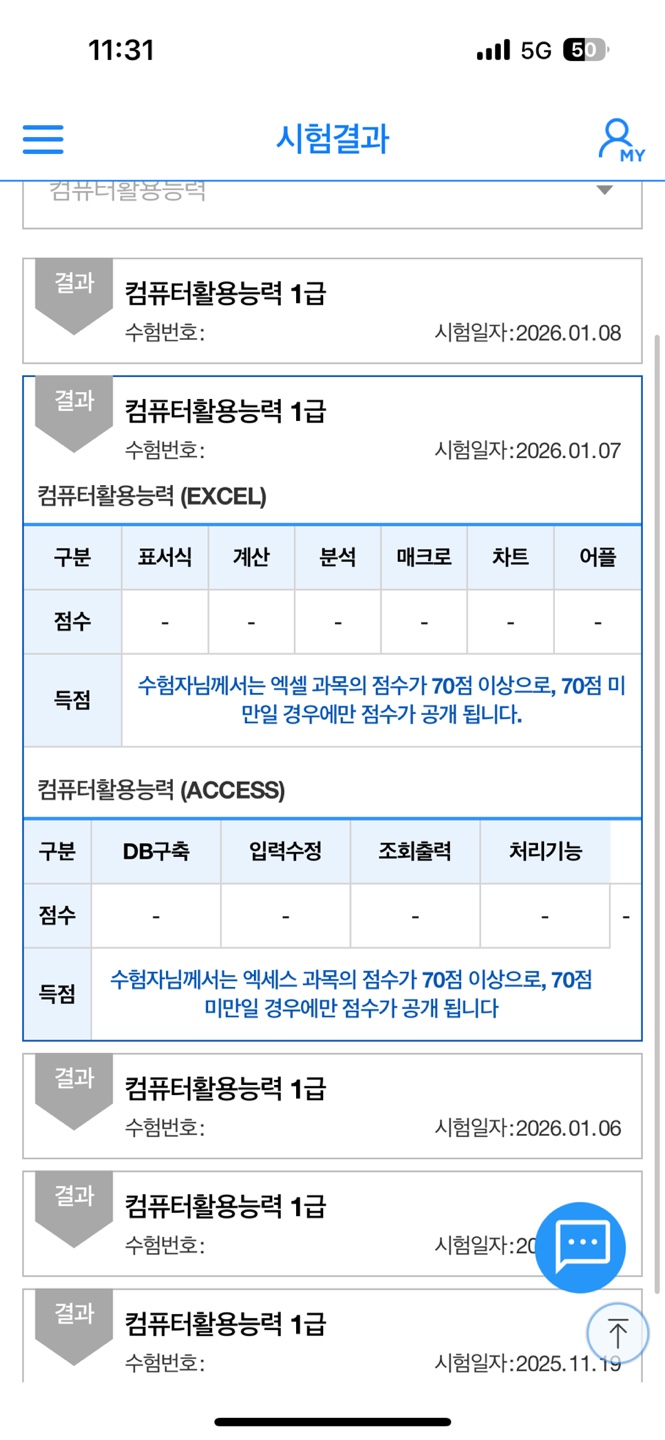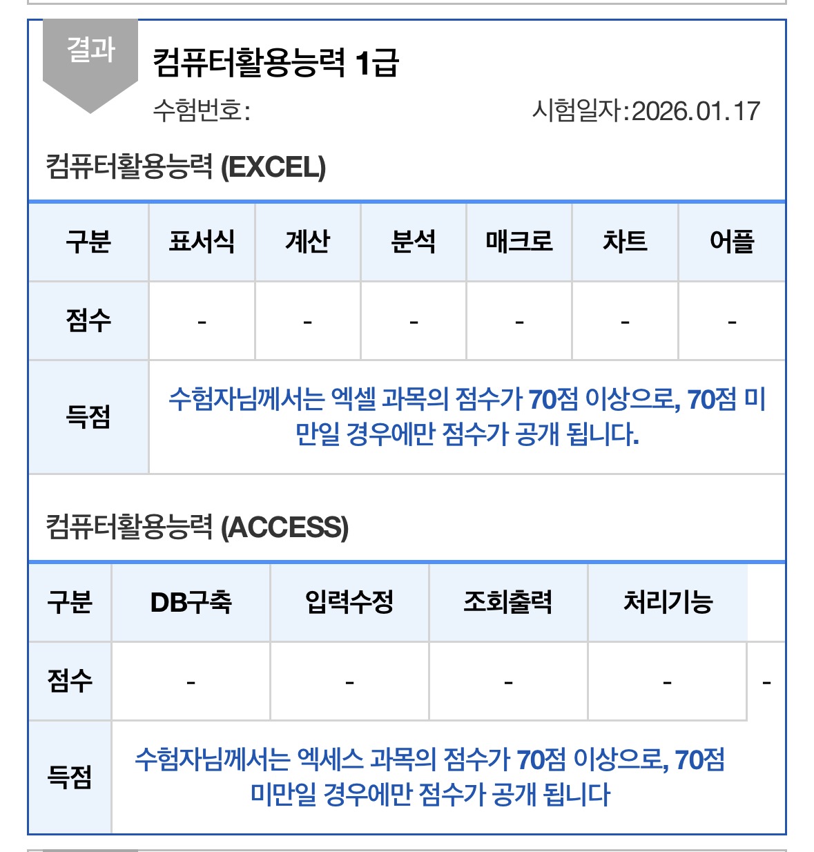 - 응시 급수: 컴활 1급 (필기 & 실기)