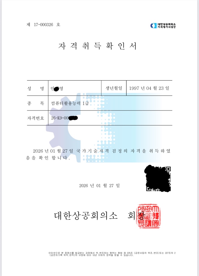 여러분… 저 드디어 취업 스펙 하나 추가했어요👏