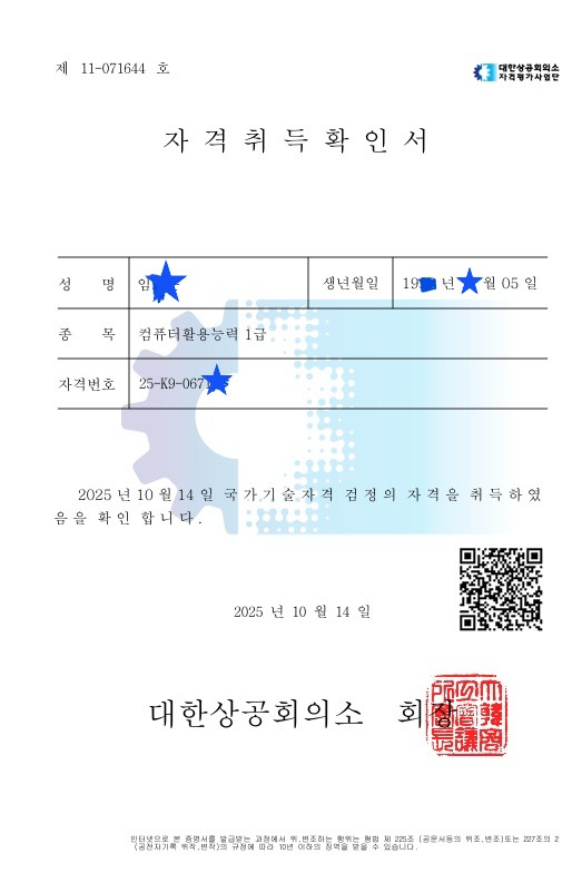 결국 오랜 기간 붙잡고 있던 컴활 시험에서 드디어 1급 실기까지 최종 합격했습니다. 합격 통보를 받았을 때는 그동안의 시행착오와 좌절이 모두 보상받는 느낌이었습니다. 단순히 자격증 한 장을 얻은 것이 아니라, 엑셀과 액세스를 제대로 다룰 수 있는 실무 감각까지 얻게 되어 자신감이 크게 높아졌습니다.