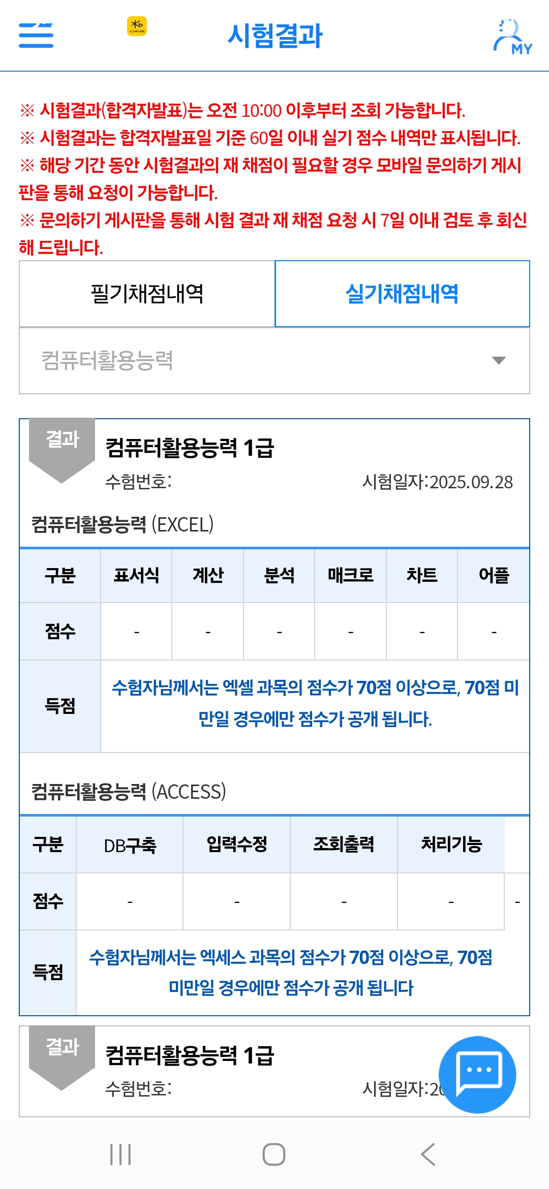 컴활 실기는 합격하면 점수가 안 나오거덩요 ㅎㅎㅎㅎㅎㅎ