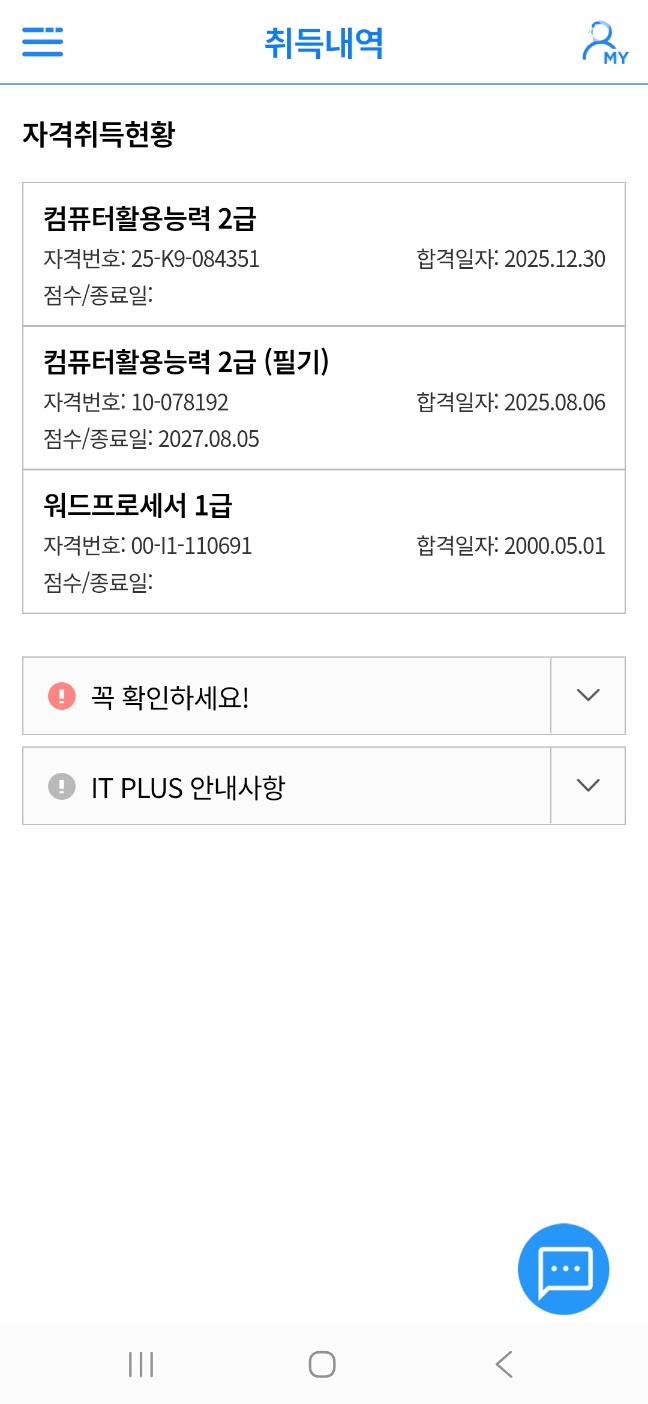 URL복사 링크가 복사되었습니다.aire**** / 2026-02-11 #초보자 추천 #컴팩트해요 #커리큘럼이 좋아요 #따라가기 좋아요 #포인트를 잘 짚어줘요 #집중이 잘돼요 #친절해요 #적절해요 #필기+실기 [내돈내산 컴퓨터 활용능력 2급 필기실기 합격후기]