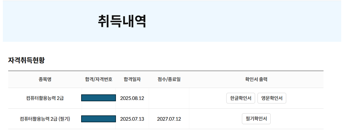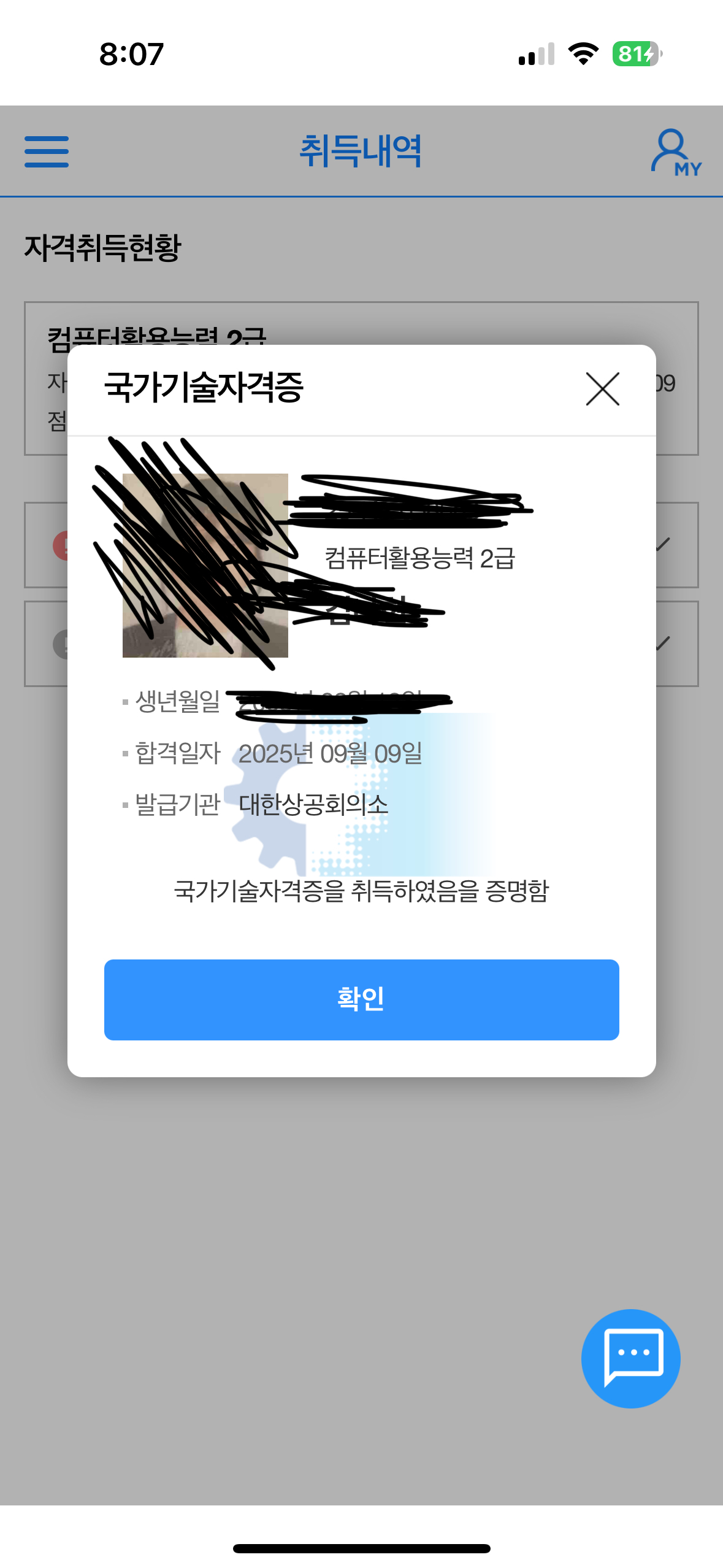 이렇게 나의 컴퓨터활용능력 자격증이 생겼다.